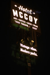 Hotel McCoy has two other locations, Pullman, WA and College Station, TX. Hotel McCoy is a 1960s-inspired modern art hotel that combines Arizona sourced beer, wine, and coffee with local art that is often for sale, in which the artist receives 100% of the proceeds.